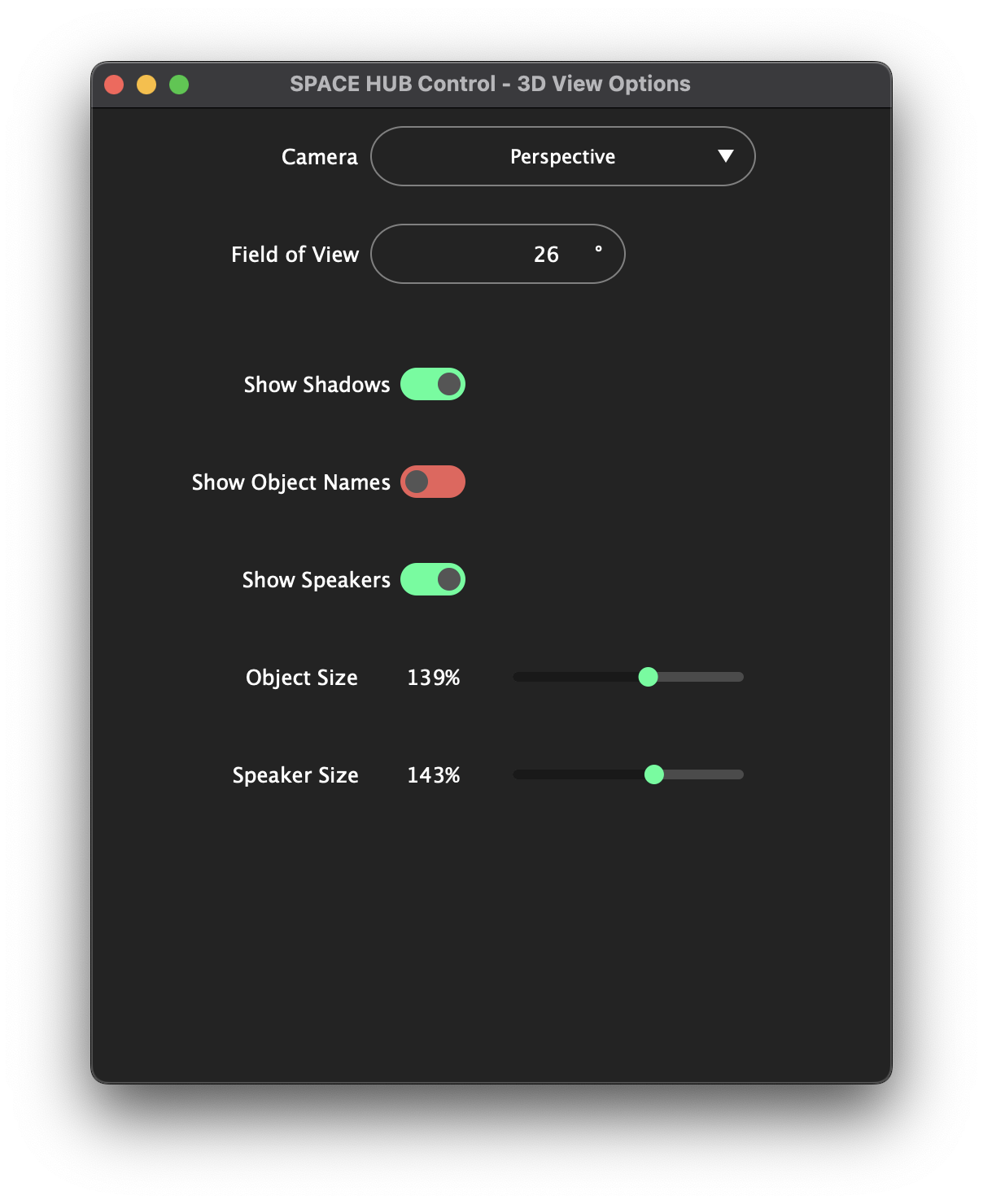 • Show Shadows Enable / Disable Objects and Speakers casting Shadows